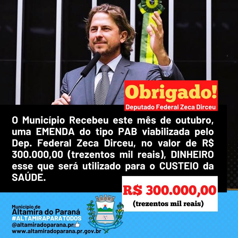 #altamiradoparana #emenda #obrigado #zecadirceu #saude #saudeevida #CidadeDeTodos #CidadeDeTodas