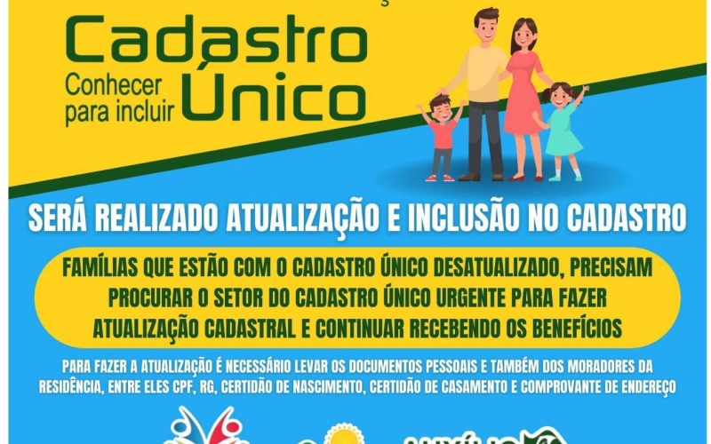 A Prefeitura de Altamira do Paraná, por meio da Secretaria de Assistência Social e, informa que nos dias 24 a 30 de Junho, será realizada à atualização do Cadastro Único.
