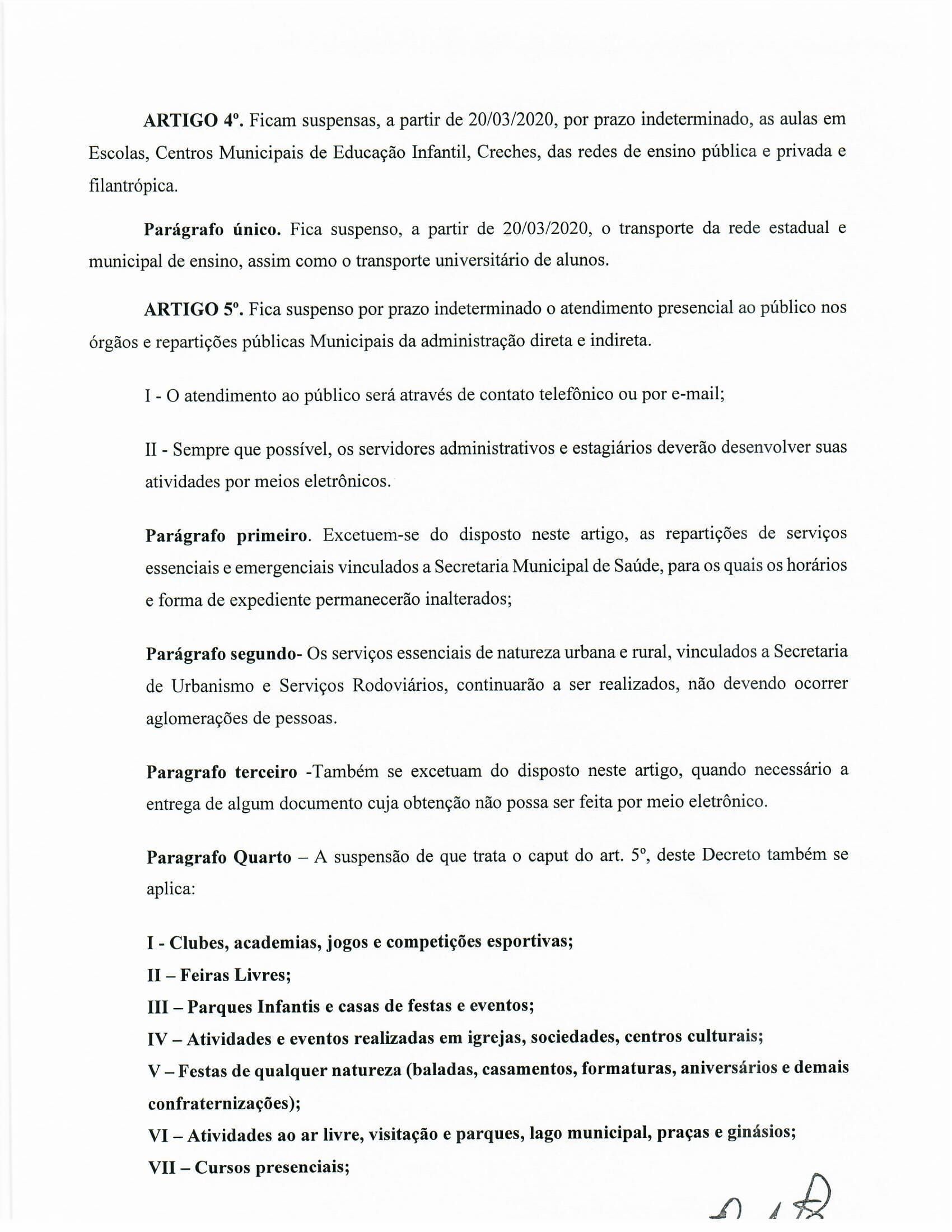 Pelo decreto ficaram abertos somente Supermercados, Farmácias , Posto de combustível , Lojas de produtos de nutrição animal, Padarias, Cartórios e Instituições financeiras, adotando todas as medidas para conter o coronavírus.