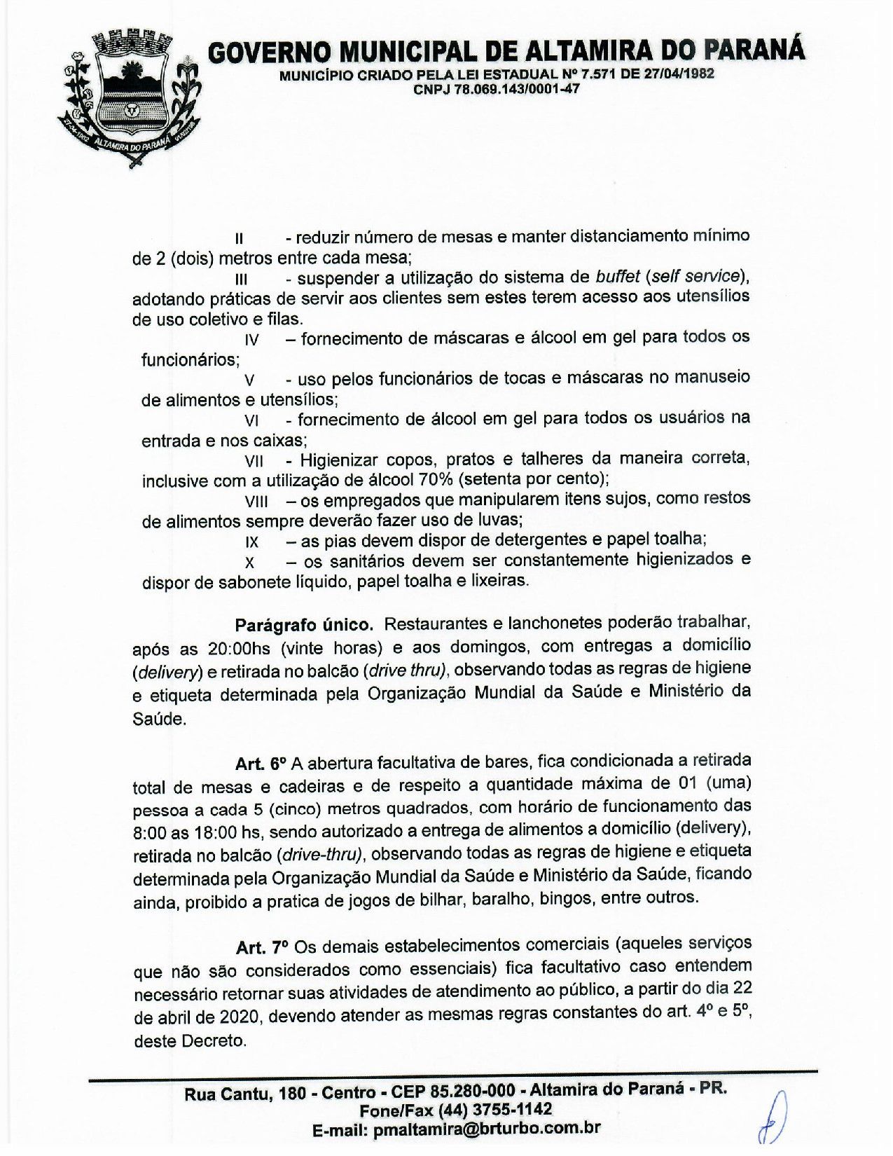 DECRETO DE ABERTURA DO COMÉRCIO COM RESTRIÇÕES